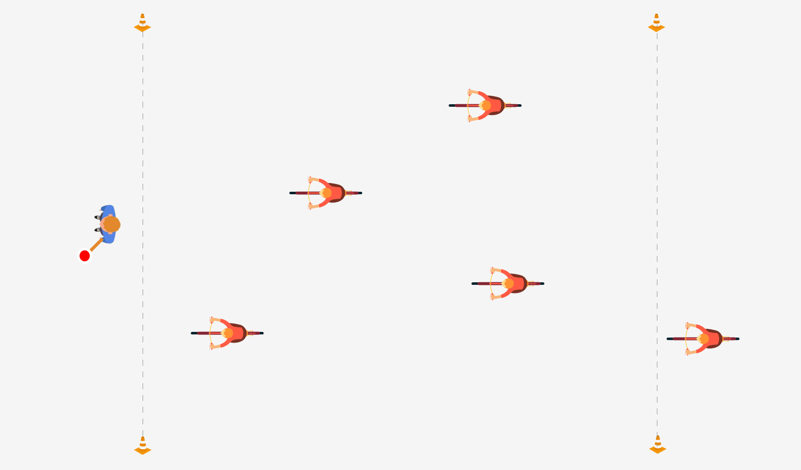 – De leerling roept luid Eéééén, twéééé, driééééé, STOP en draait zich snel om naar de fietsers en toont het gedraaide rode klaarover bord.