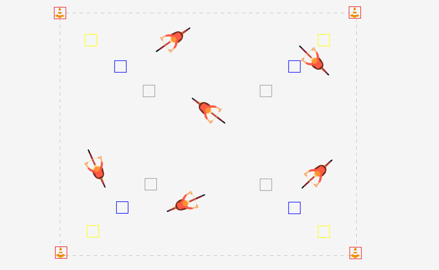 Maak met pylonen een vierkant vak van 10 x 10 meter en laat leerlingen daarin door elkaar heen fietsen.